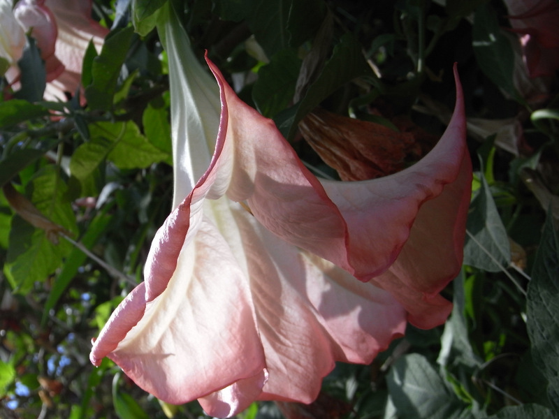 Did you know this plant(we call it angel's trumpet)is poisonous,in fact, hallucinogenic? Many teenagers in Florida have been hospitalized after ingesting it! You can read more at http://en.wikipedia.org/wiki/Brugmansia