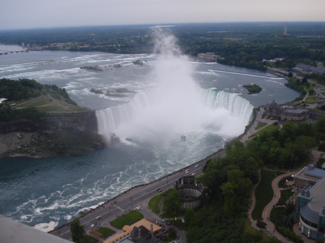 This view of the falls is taken from a rotating restaurant at the top of a tall tower on the Canadian side.
