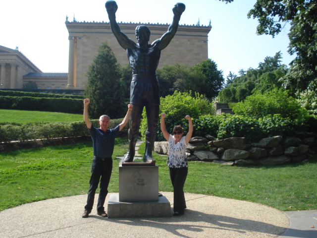 Here are we, strutting our stuff. Apparently the statue was originally located at the top of the steps but that encouraged too many people to run up and down them. It is now located next door.